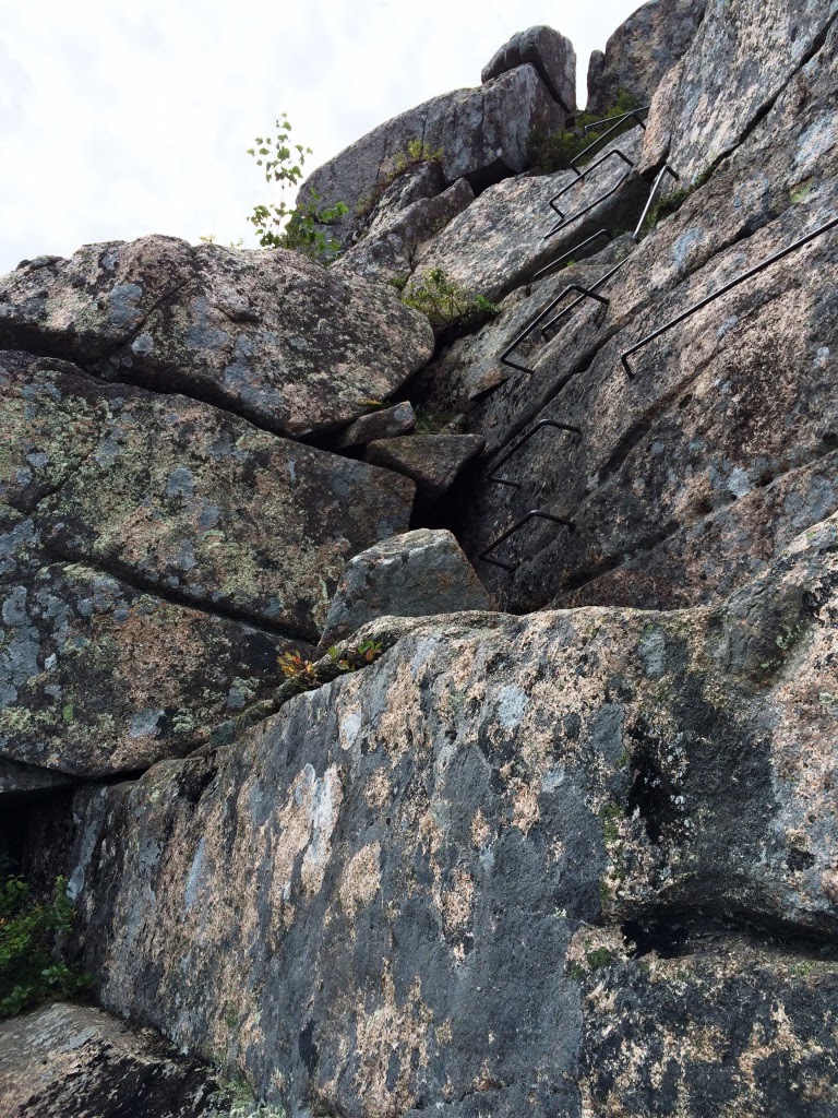 I had an entire free day after my arrival with Maryly and I made good use of it by taking a short one-hour road trip to Acadia National Park to see the sights and take a hike. After looking at the park's website, I thought that the Precipice Trail sounded like the trail for me. Since I was traveling solo for the day, it seemed that this trail would be well-enough traveled that I would have good company along the way. At the visitor center, the ranger warned me that the trail was rated "strenuous" but I thought, how strenuous can a trail be that is less than one mile each way? I was soon to find out. The trail is named Precipice for a reason; it is not recommended for people with a fear of heights. I don't have a strong fear of heights, but climbing tall ladders can get me a bit shaky. It turned out that was exactly what some of this trail entailed.